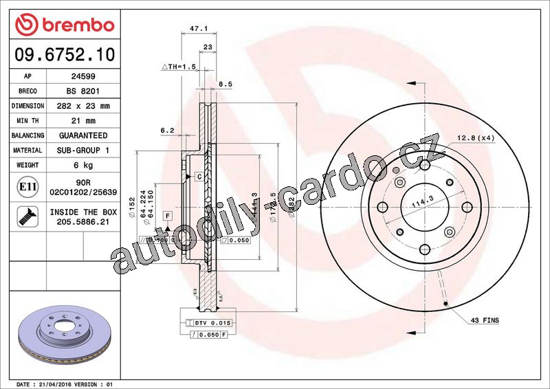 Brzdový kotouč BREMBO 09.6752.10 - HONDA
