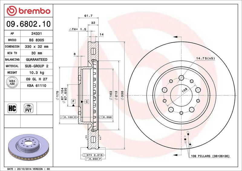Brzdový kotouč BREMBO 09.6802.10 - FERRARI