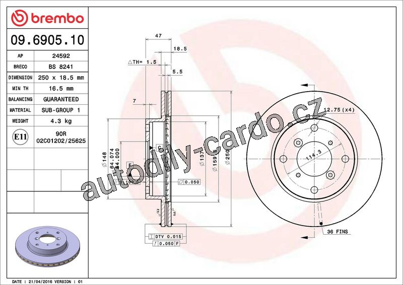 Brzdový kotouč BREMBO 09.6905.10 - SUZUKI