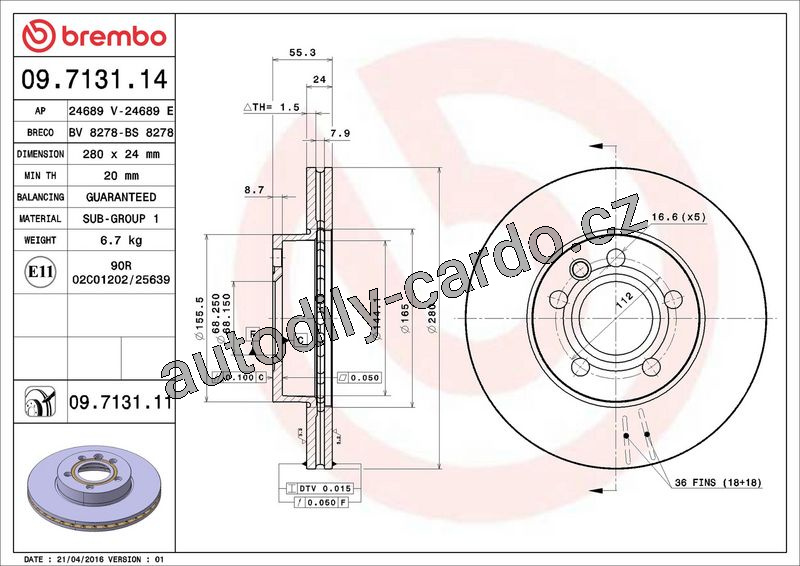 Brzdový kotouč BREMBO 09.7131.14 - VW