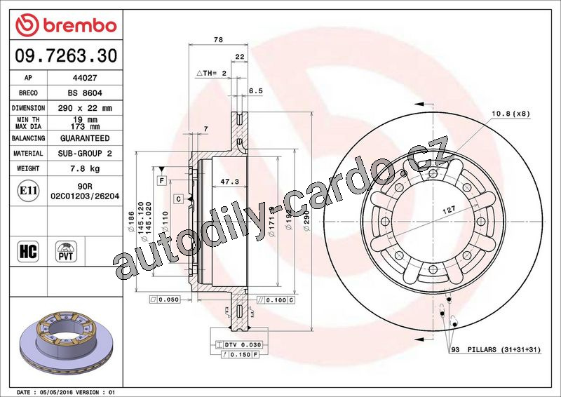 Brzdový kotouč BREMBO 09.7263.30 - NISSAN
