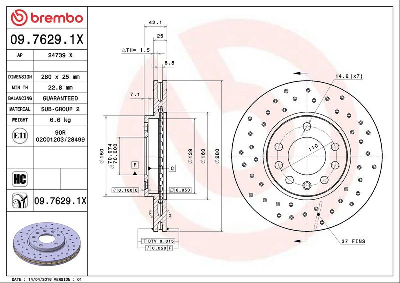 Brzdový kotouč BREMBO 09.7629.1X