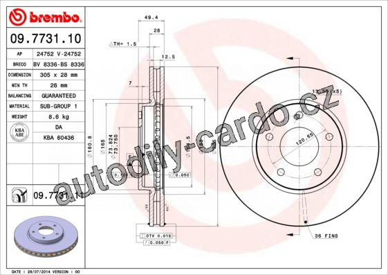 Brzdový kotouč BREMBO 09.7731.10 - JAGUAR