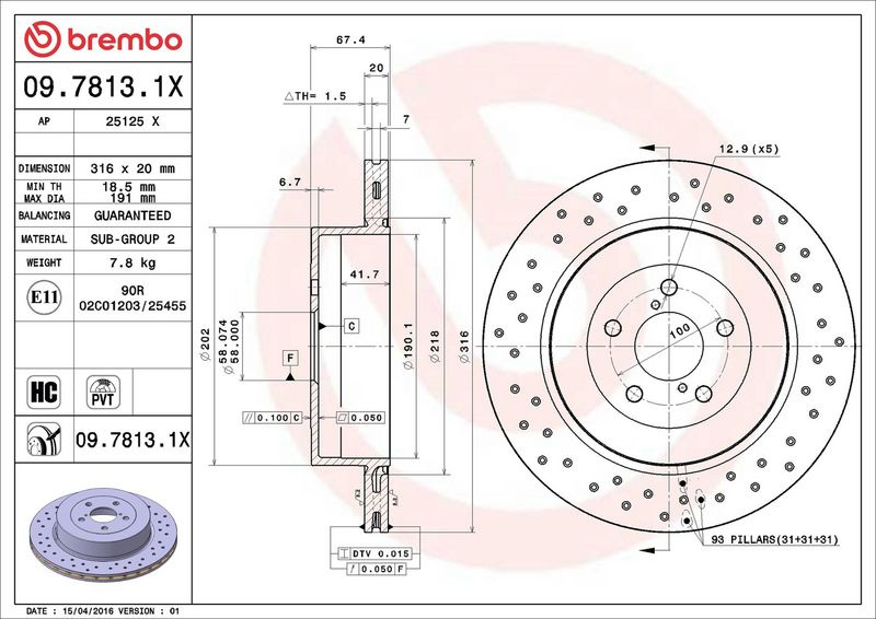 | Typ brzdového kotouče: | děrováno / vnitřně větráno |