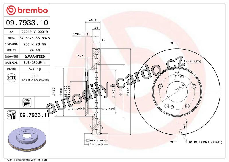 Brzdový kotouč BREMBO 09.7933.10 - NISSAN