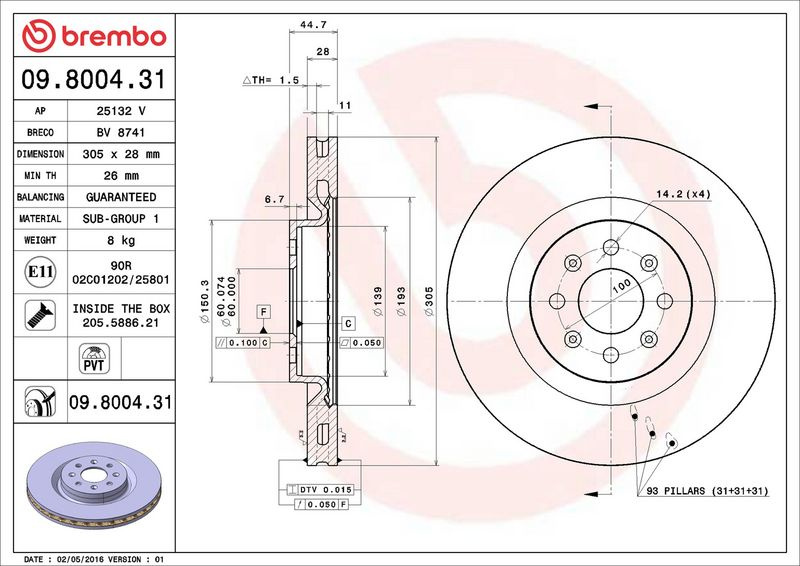 Brzdový kotouč BREMBO 09.8004.31 - FIAT