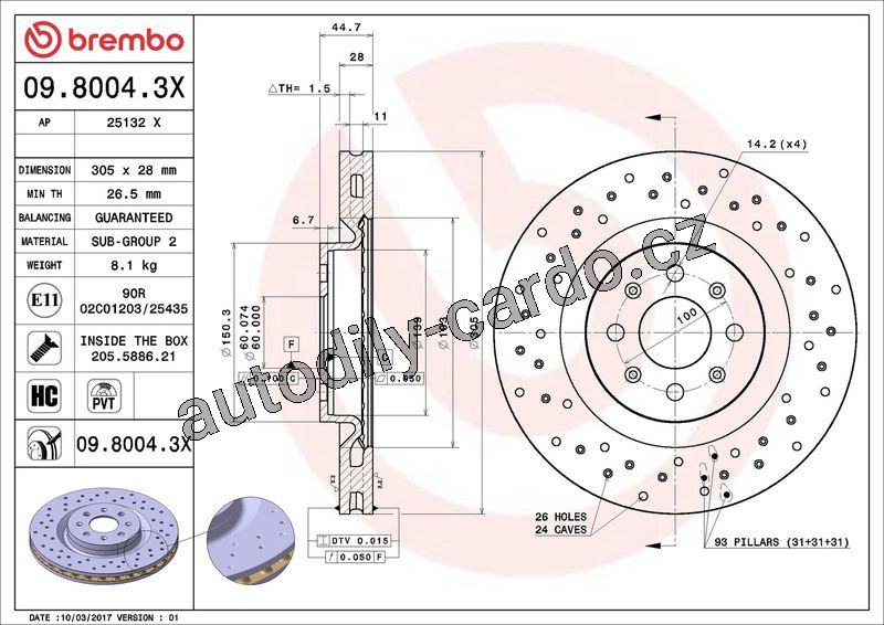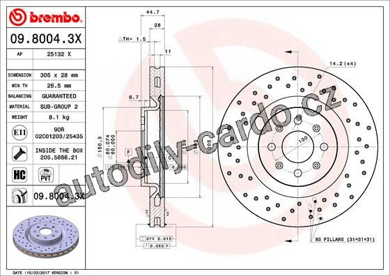 | Typ brzdového kotouče: | děrováno / vnitřně větráno |
