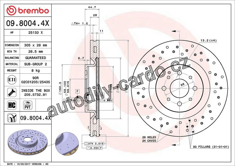 | Typ brzdového kotouče: | děrováno / vnitřně větráno |