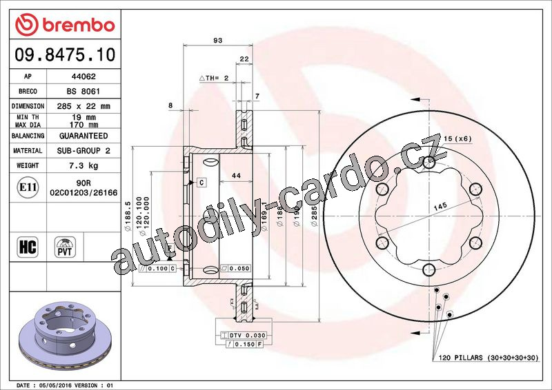 Brzdový kotouč BREMBO 09.8475.10 - MERCEDES-BENZ