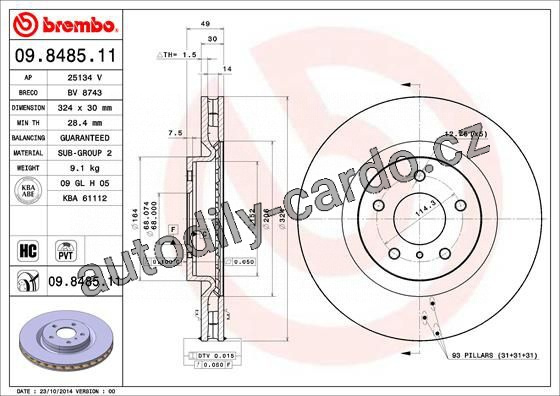Brzdový kotouč BREMBO 09.8485.11