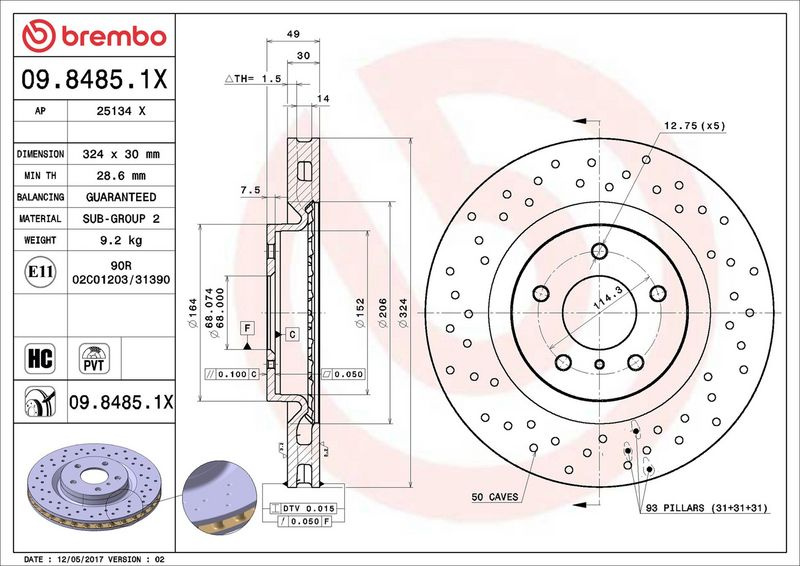Brzdový kotouč BREMBO 09.8485.1X