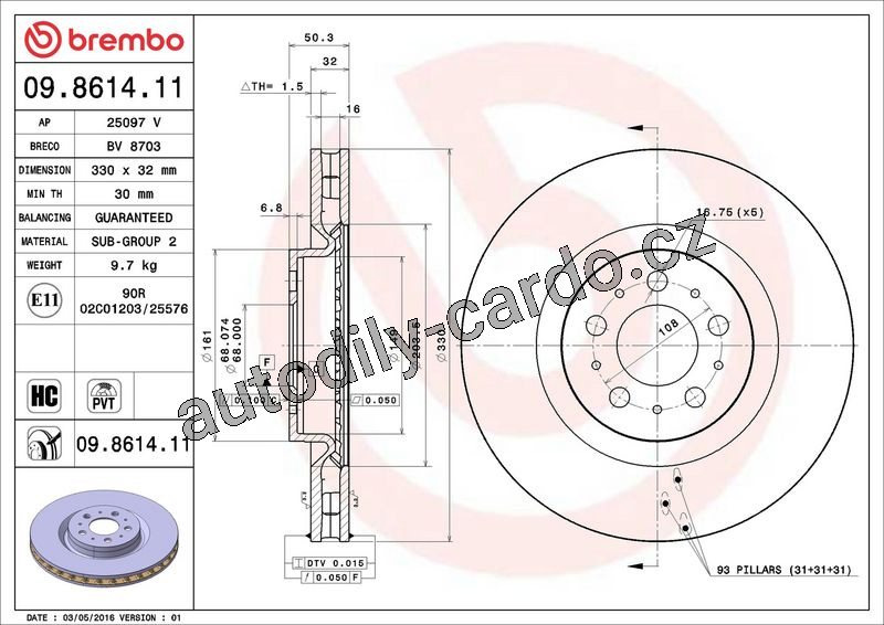 Brzdový kotouč BREMBO 09.8614.11 - VOLVO