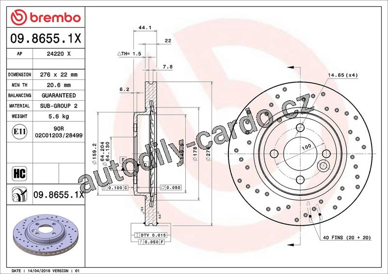 | Typ brzdového kotouče: | děrováno / vnitřně větráno |