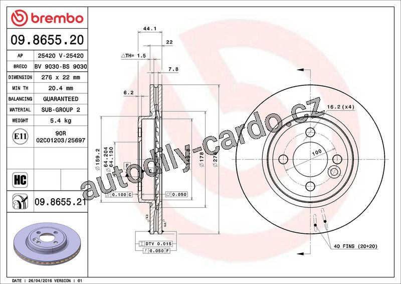 Brzdový kotouč BREMBO 09.8655.20