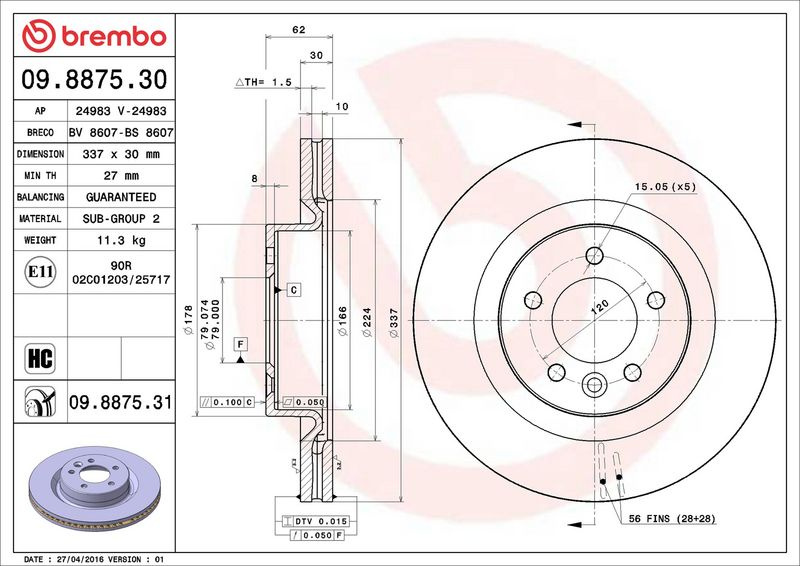 Brzdový kotouč BREMBO 09.8875.31