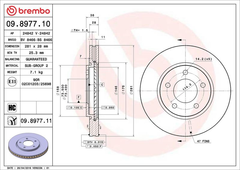 Brzdový kotouč BREMBO 09.8977.10 - CHRYSLER, DODGE