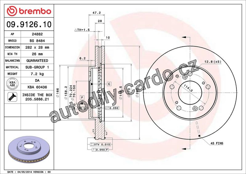 Brzdový kotouč BREMBO 09.9126.10 - HONDA
