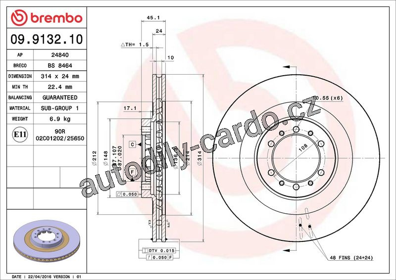 Brzdový kotouč BREMBO 09.9132.10 - MITSUBISHI