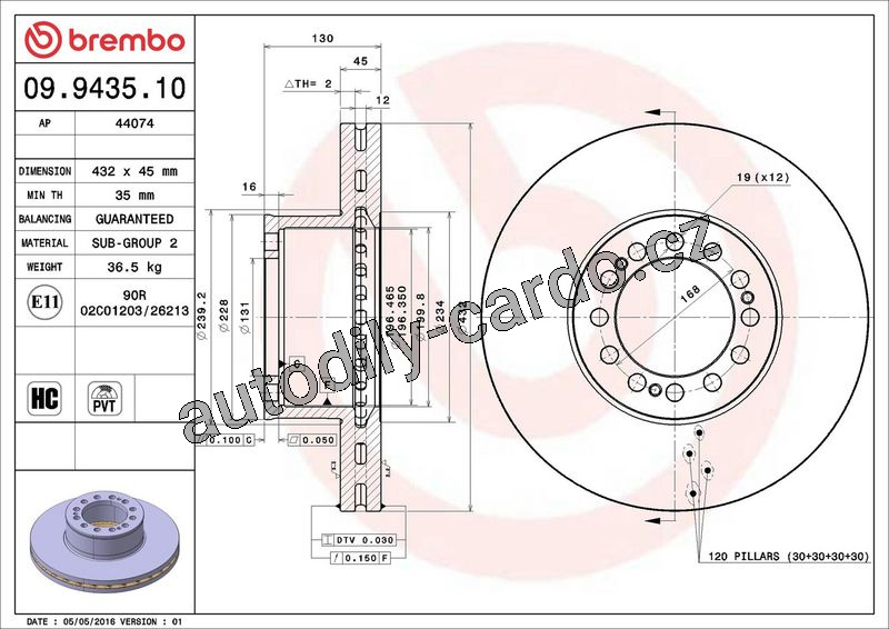 Brzdový kotouč BREMBO 09.9435.10 - MAN