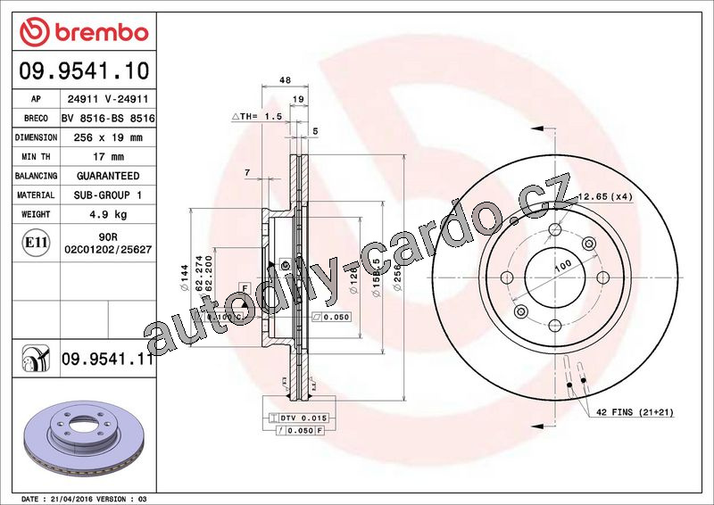 Brzdový kotouč BREMBO 09.9541.11