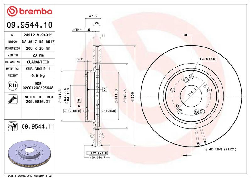 Brzdový kotouč BREMBO 09.9544.10 - HONDA