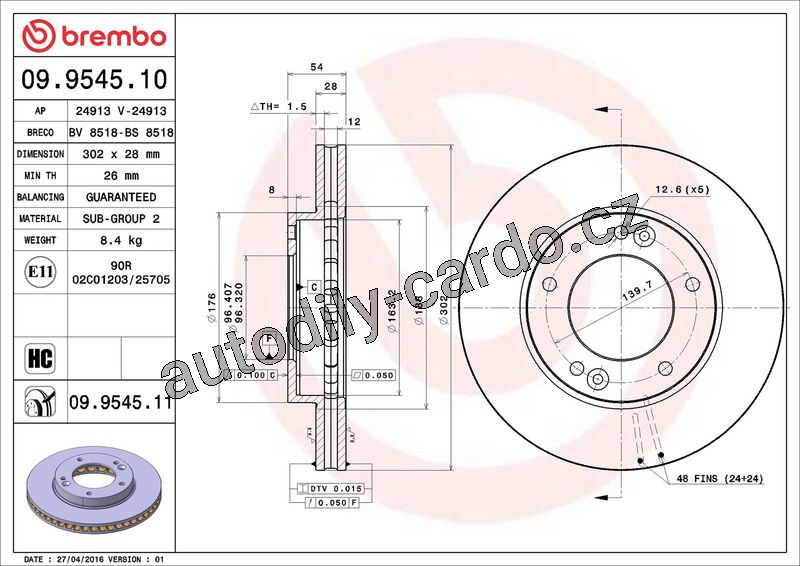 Brzdový kotouč BREMBO 09.9545.11