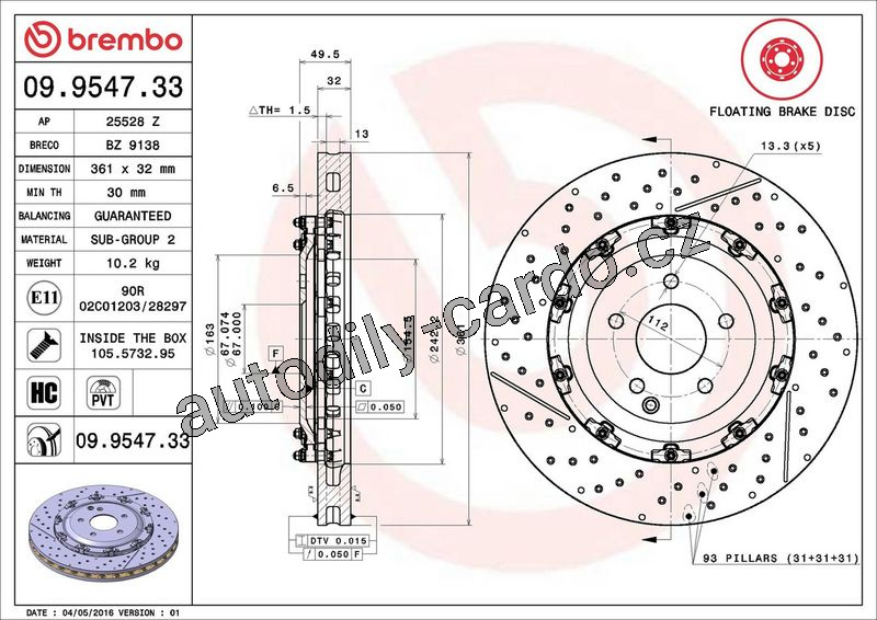 | Typ brzdového kotouče: | se štěrbinami / děrováno |