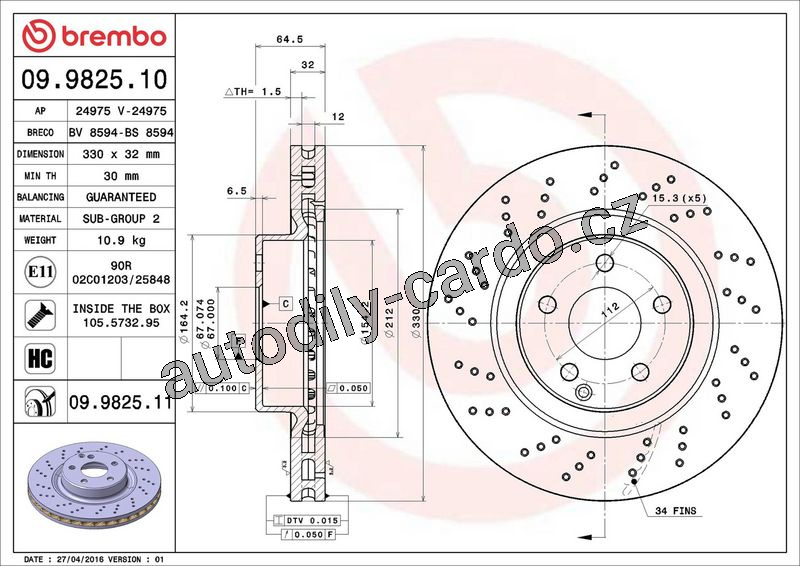 Brzdový kotouč BREMBO 09.9825.10 - MERCEDES-BENZ