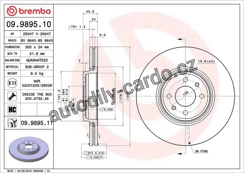 Brzdový kotouč BREMBO 09.9895.11