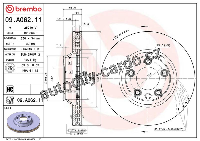 Brzdový kotouč BREMBO 09.A062.11 - AUDI, VW