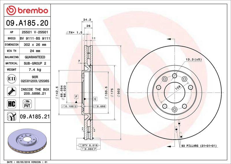 Brzdový kotouč BREMBO 09.A185.20