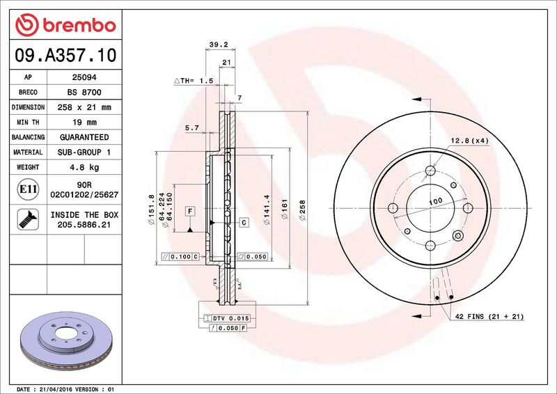 Brzdový kotouč BREMBO 09.A357.10 - HONDA