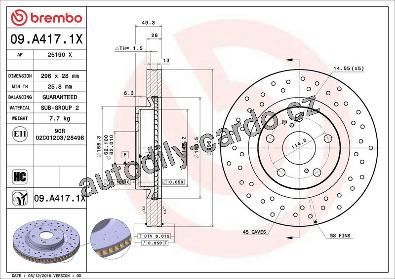 Brzdový kotouč BREMBO 09.A417.1X