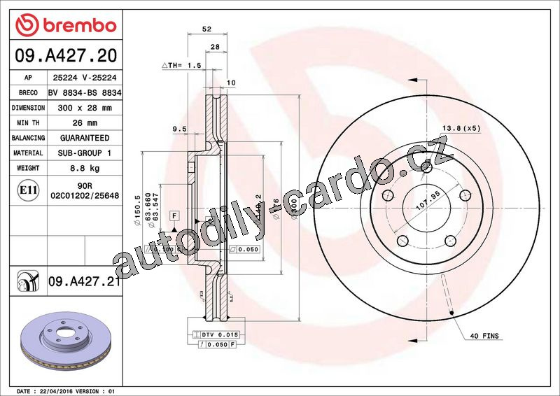 Brzdový kotouč BREMBO 09.A427.21