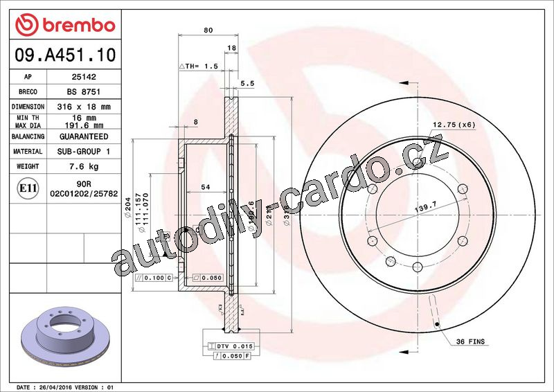 Brzdový kotouč BREMBO 09.A451.10 - NISSAN