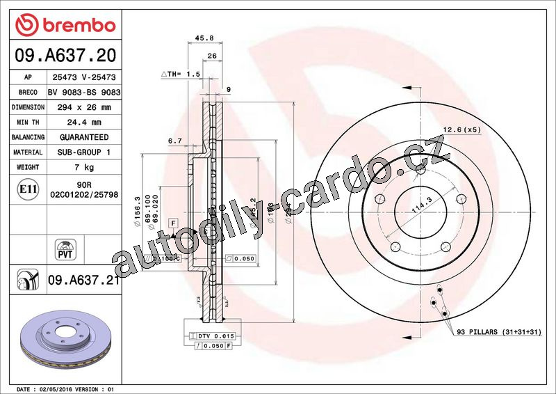 Brzdový kotouč BREMBO 09.A637.20 - CITROËN, MITSUBISHI, PEUGEOT