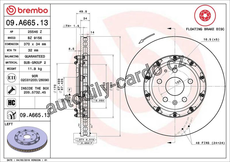 Brzdový kotouč BREMBO 09.A665.13 - CADILLAC, CHEVROLET