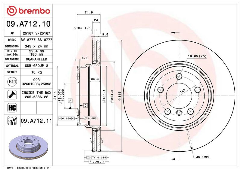 Brzdový kotouč BREMBO 09.A712.11 - BMW