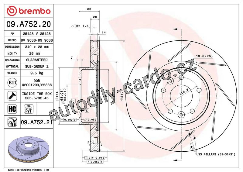 Brzdový kotouč BREMBO 09.A752.20 - RENAULT