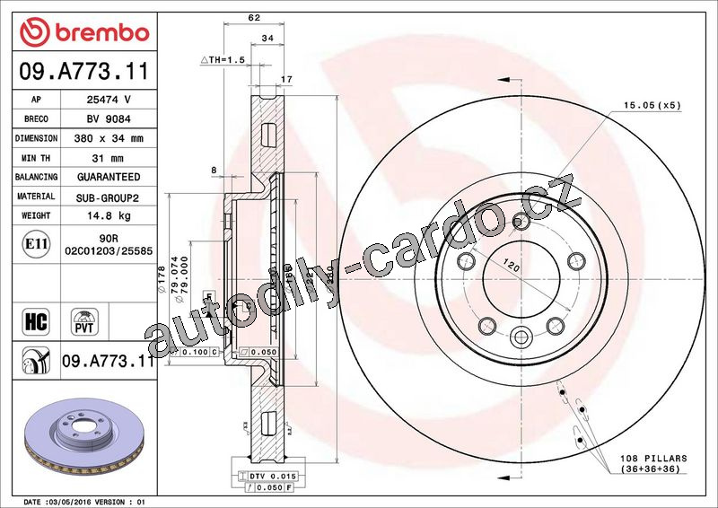 Brzdový kotouč BREMBO 09.A773.11 - LAND ROVER