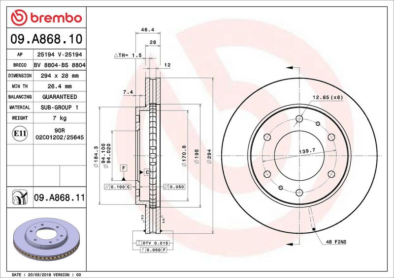 Brzdový kotouč BREMBO 09.A868.10 - FIAT, MITSUBISHI