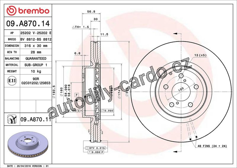 Brzdový kotouč BREMBO 09.A870.11 - SUBARU