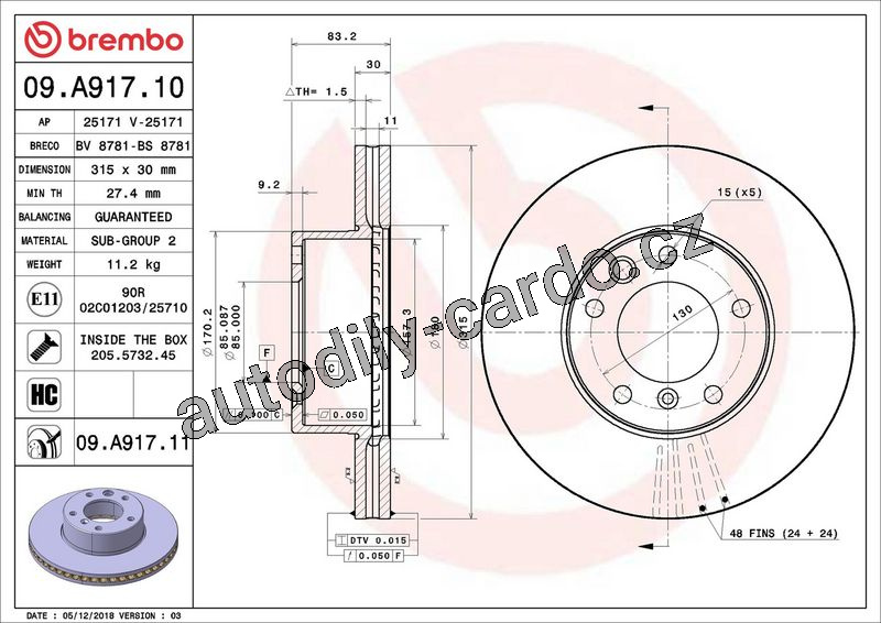 Brzdový kotouč BREMBO 09.A917.10 - MERCEDES-BENZ, PUCH