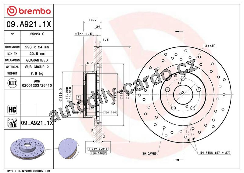 | Typ brzdového kotouče: | děrováno / vnitřně větráno |