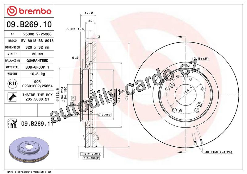 Brzdový kotouč BREMBO 09.B269.10 - HONDA
