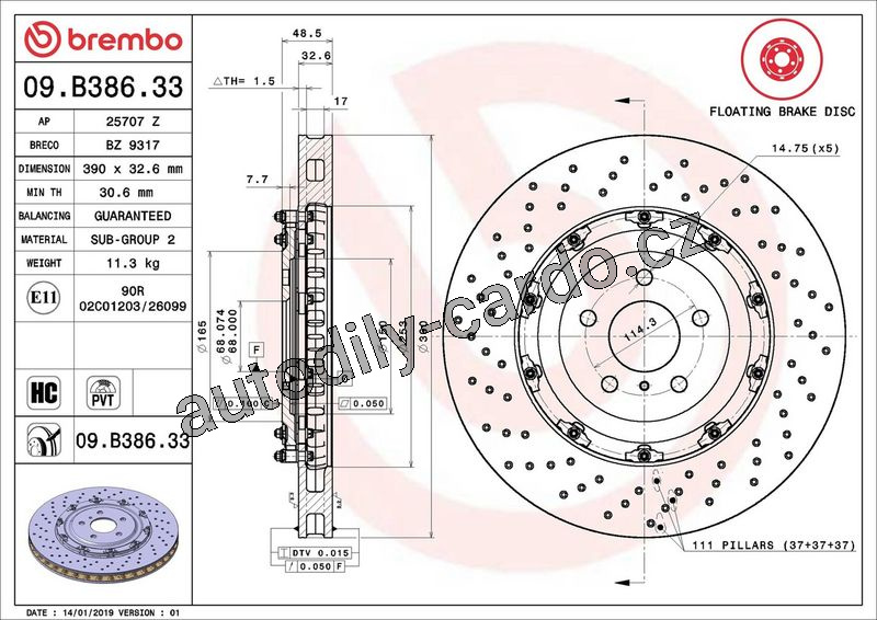 Brzdový kotouč BREMBO 09.B386.33 - NISSAN
