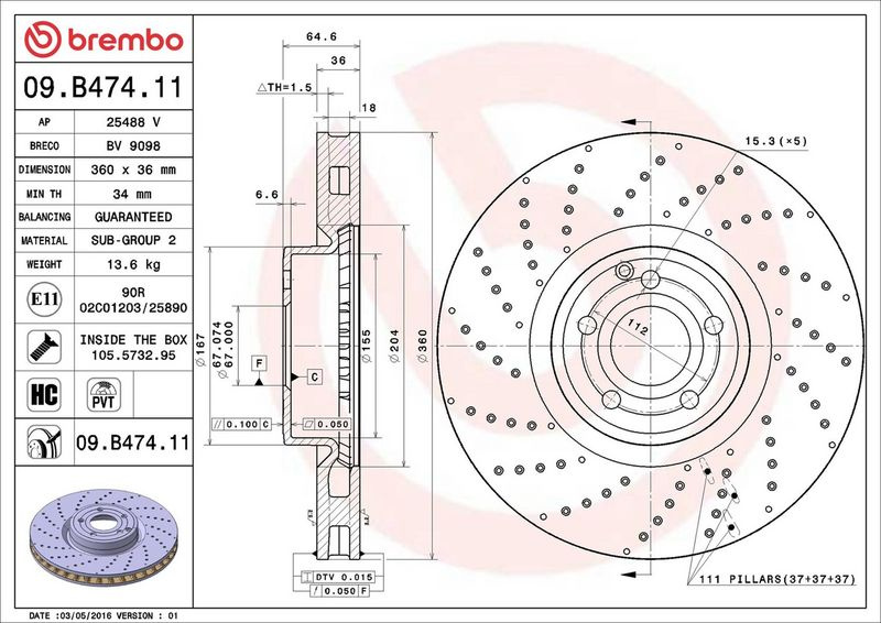 Brzdový kotouč BREMBO 09.B474.11 - MERCEDES-BENZ