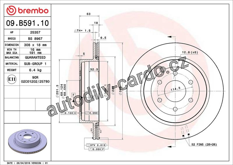 Brzdový kotouč BREMBO 09.B591.10 - NISSAN