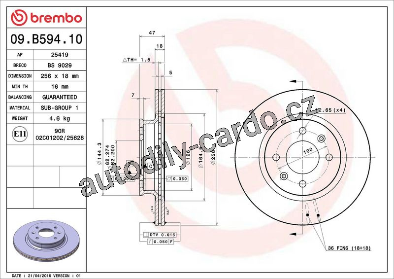 Brzdový kotouč BREMBO 09.B594.10 - HYUNDAI