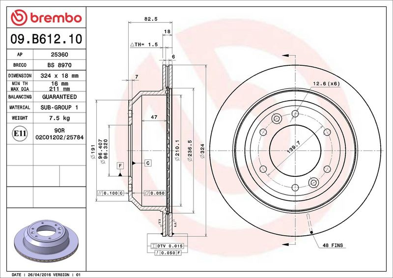 Brzdový kotouč BREMBO 09.B612.10 - HYUNDAI